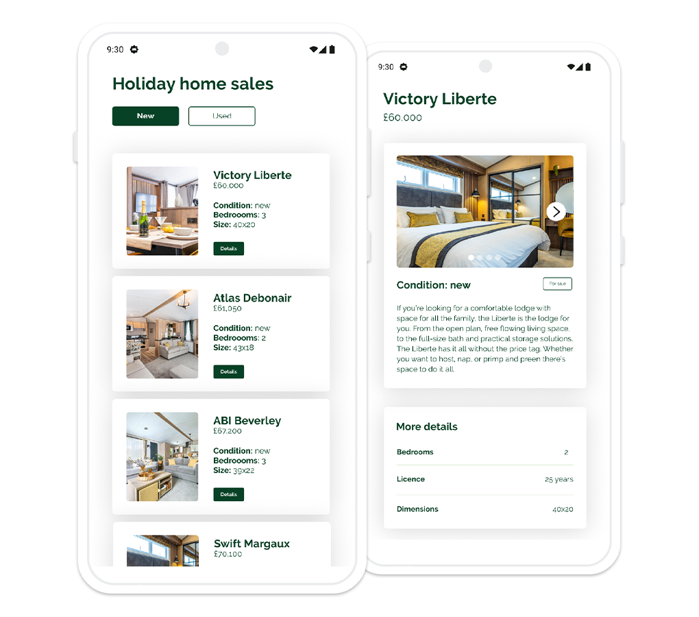 They came for a weekend, and left wanting to stay. The app acts as a digital showroom, allowing guests to browse your available statics, lodges, or cabins with detailed information, photos, and pricing. Enquiries feed directly into your sales pipeline, making it easy for guests to take the next step into ownership.